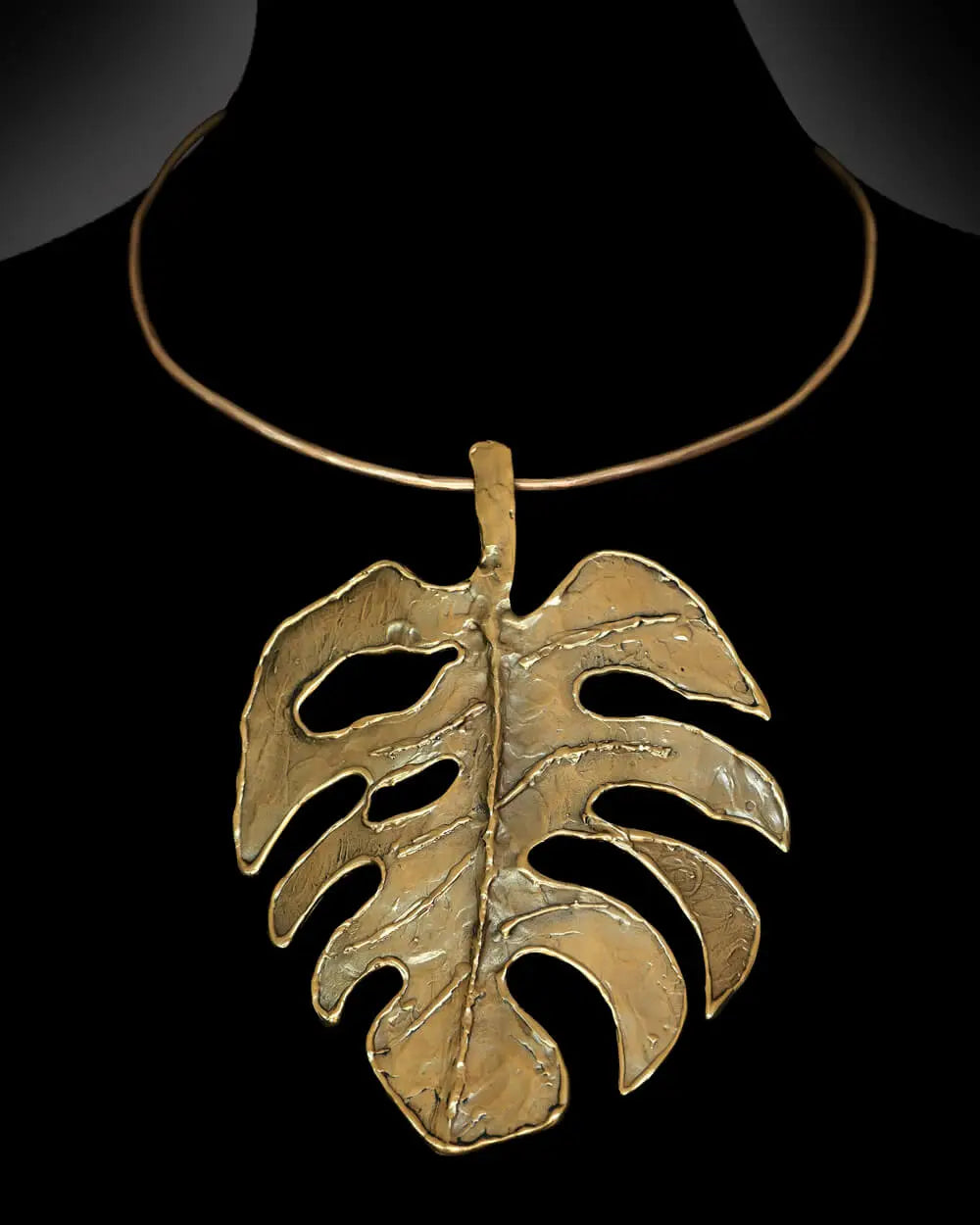 Ciondolo FOGLIA DI MONSTERA, realizzata e copiata dalle sapienti mani della natura, colata, battuta e profilata.