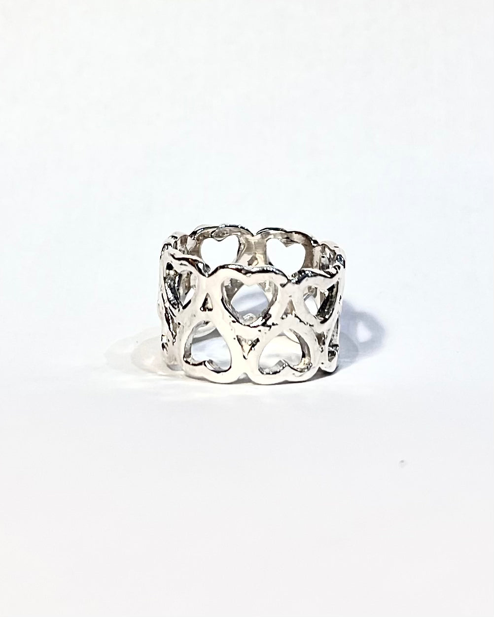 Anello in bronzo o argento a fascia composta da tanti piccoli cuori che si uniscono in un abbraccio continuo. Ogni cuore rappresenta un pensiero, un gesto, un'emozione che insieme formano un simbolo eterno di affetto, connessione, amicizia, amore.