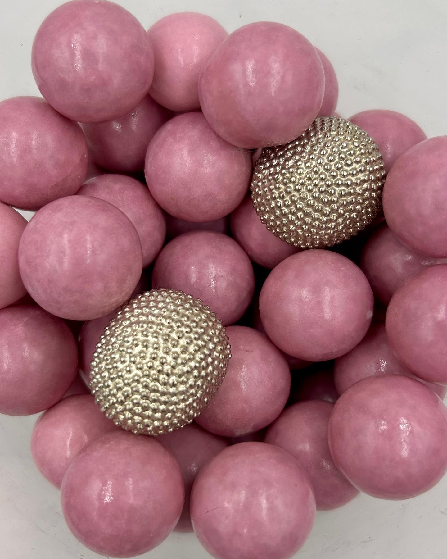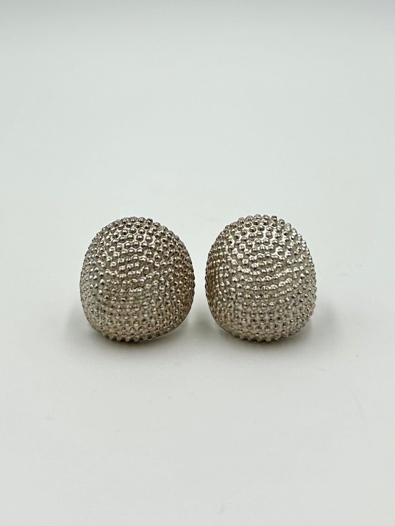 Due mezze sfere ricurve realizzate con la paziente tecnica del drop. Piccolissime gocce di cera colate ad una ad una e poi fuse in bronzo.